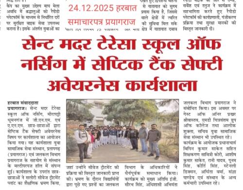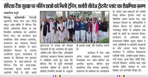 LOKMITRA BUREAU MEDIA COVERAGE OF ST. MOTHER TERESA SCHOOL OF NURSING - SAFETY TANK WORKSHOP IN ASSOCIATION WITH YUVA SAMAJIK SANSTHAN & NAGAR N